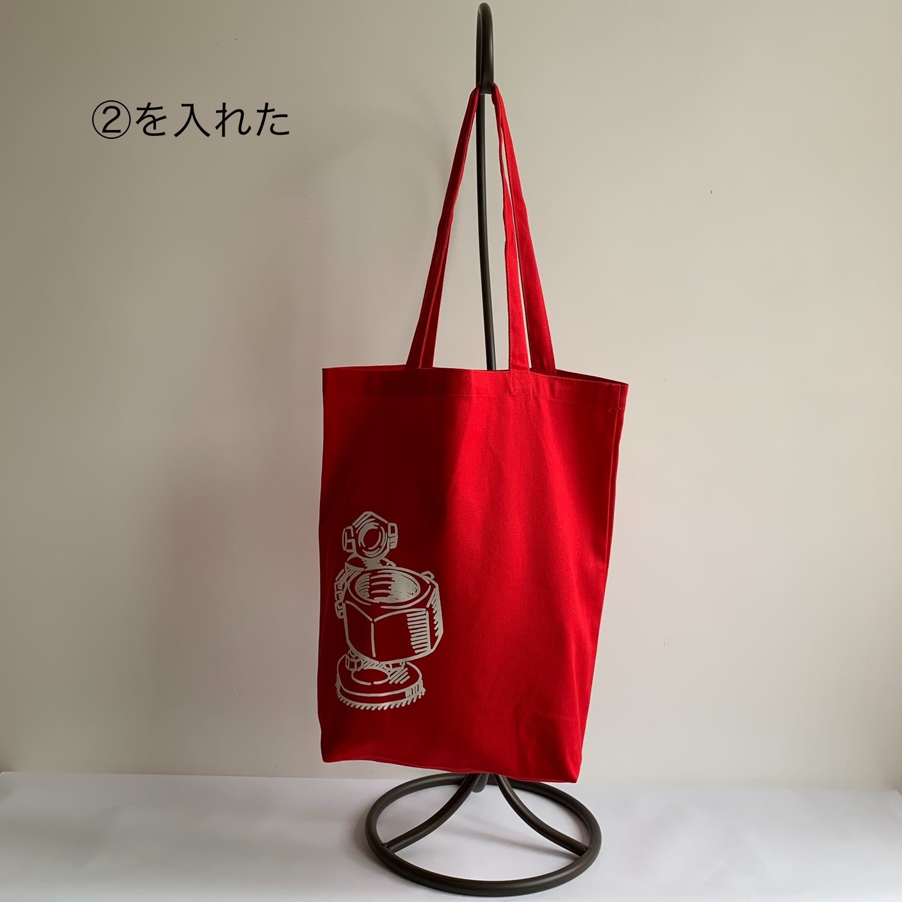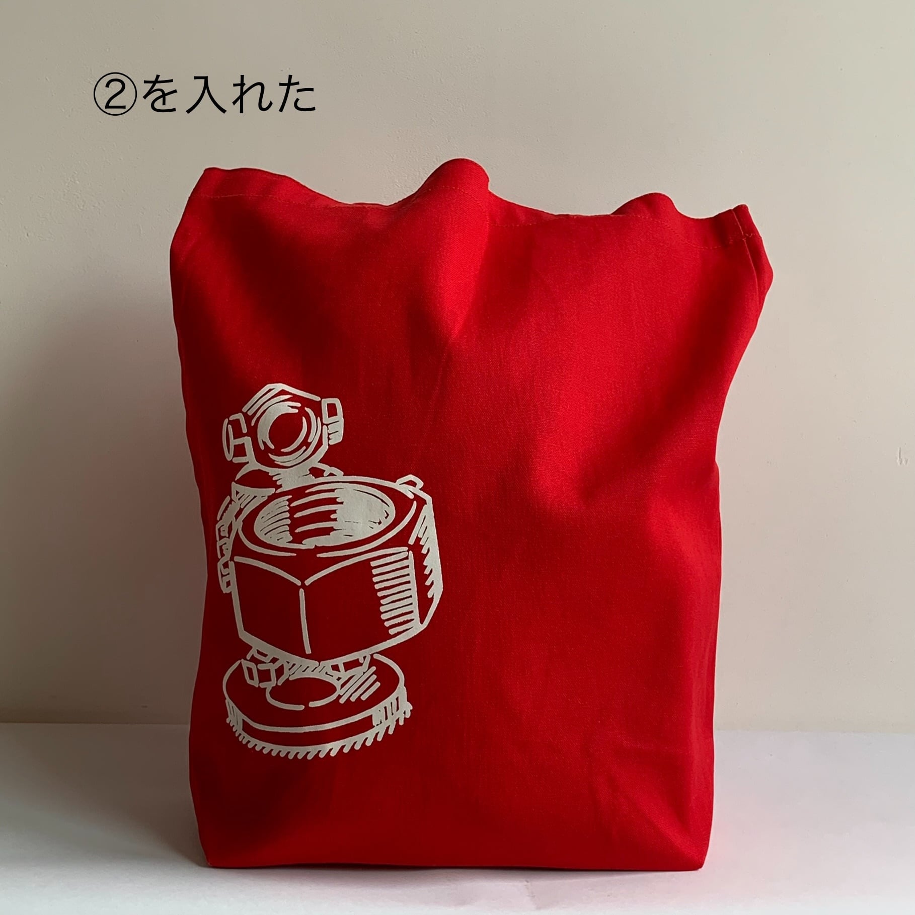 gotoで販売しているロボット君ハンコ入れをモチーフにしたトートバッグです。