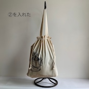 巾着型でクチを絞れますので、中が見えたり出てしまう心配が減ります。