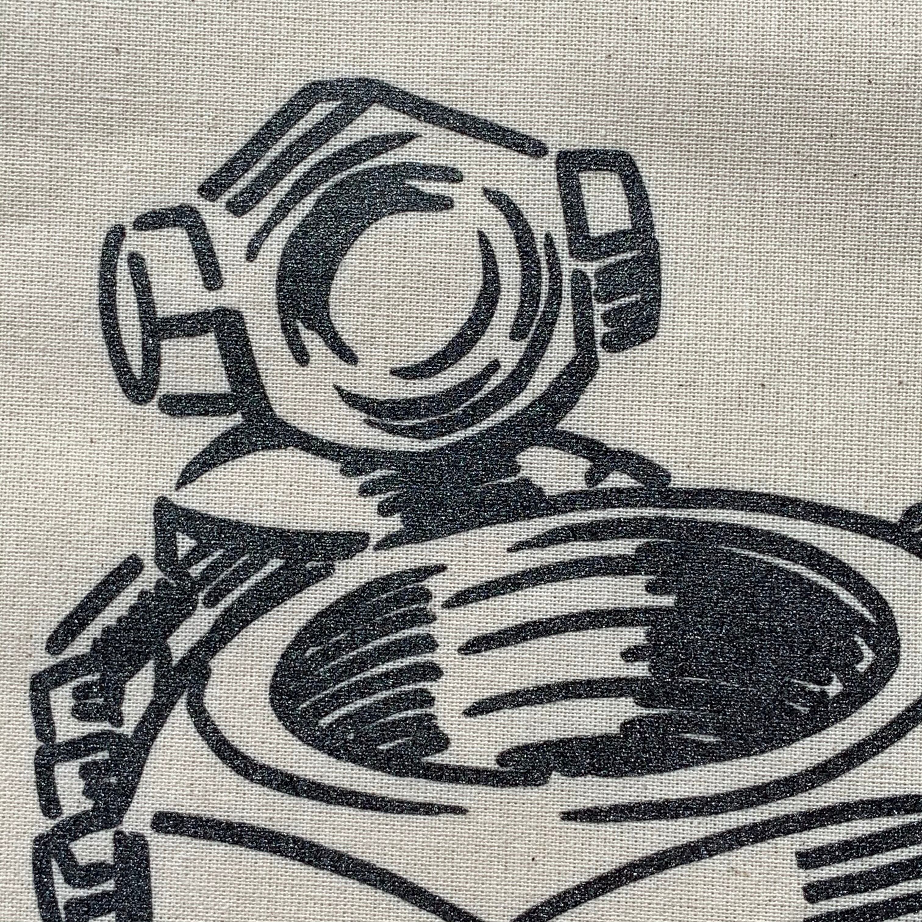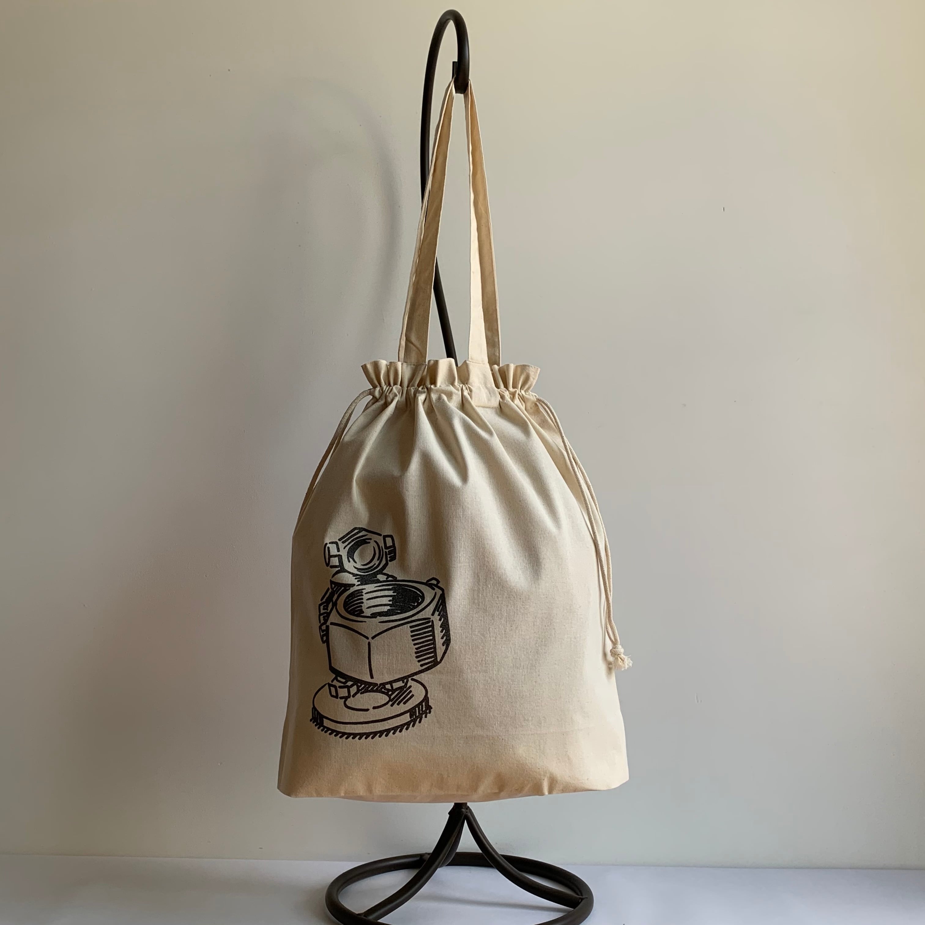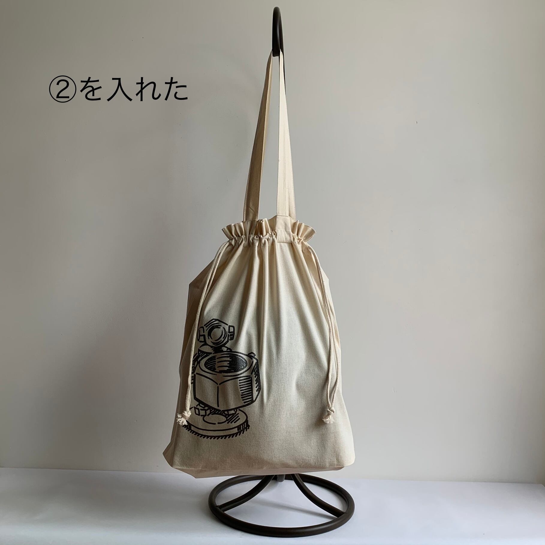 gotoで販売しているロボット君ハンコ入れをモチーフにした巾着バッグです。
