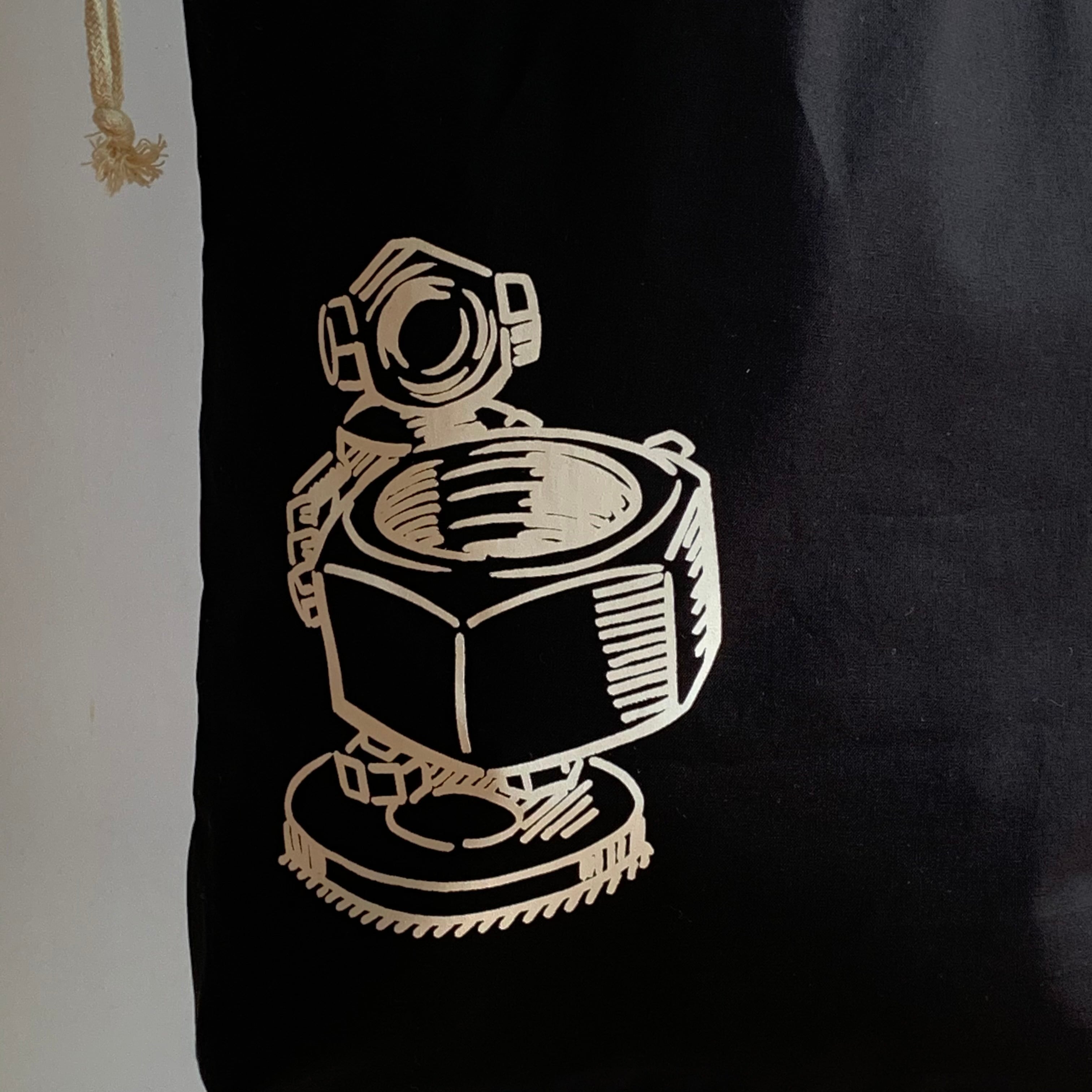 gotoで販売しているロボット君ハンコ入れをモチーフにした巾着バッグです。
